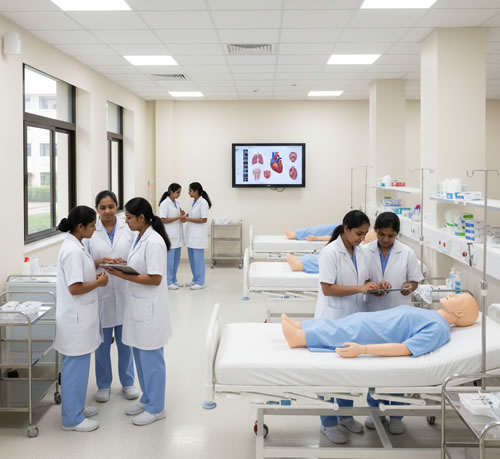 Nursing Foundation Lab: Equipped with advanced patient simulators and hospital-grade equipment to practice basic and advanced nursing procedures in a risk-free environment.